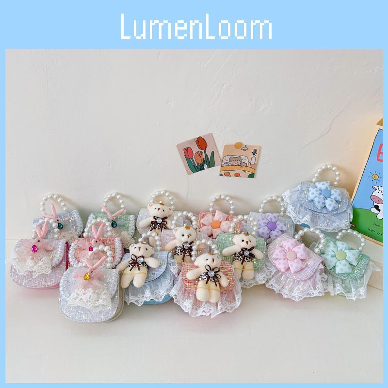 Kid Crossbody Bag With Pearl Handle And Flower Bear Rabbit Decoration