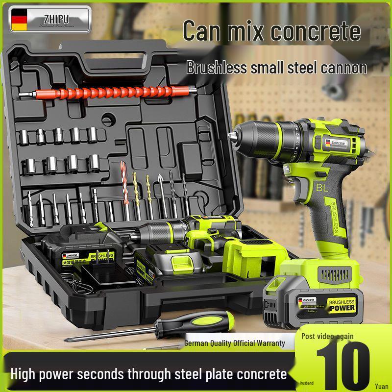 High-Power Brushless Lithium Hand Drill Set with Toolbox