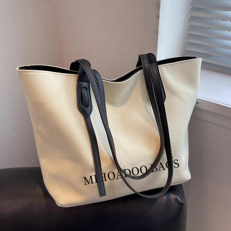 Large Capacity Canvas Bag Women's 2025 New Casual Shoulder Bag College Students Class Commuter Bag Tote Bag