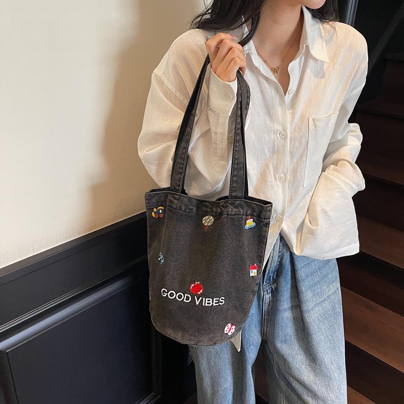New Casual Oblique Span Denim Bag Women's Large-capacity Class Canvas Bag Literary Commuter Zipper Bag Tote Bag Tide
