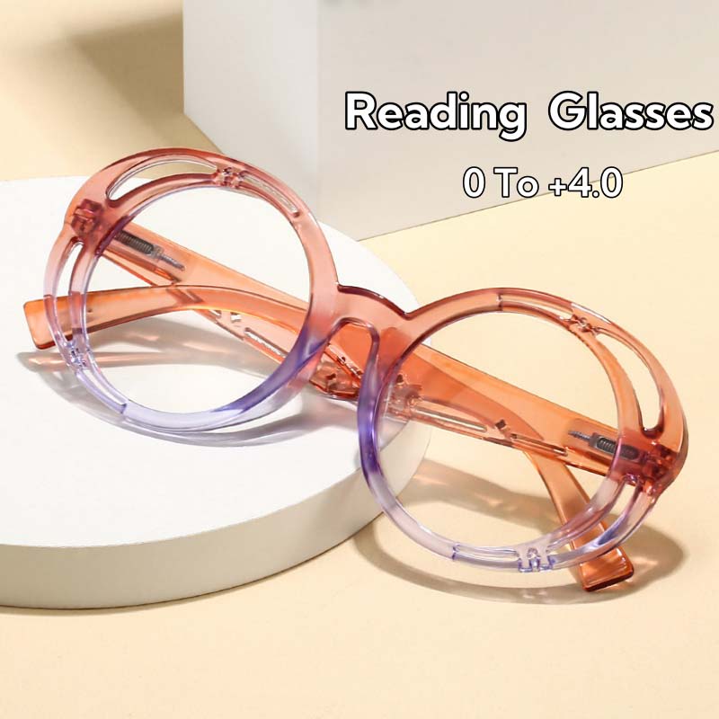 Personality Hollowed Out Large Round Frame Reading Glasses Multicolor Splicing Clear Lens Far Sight Glasses Diopter 0 To +4.0