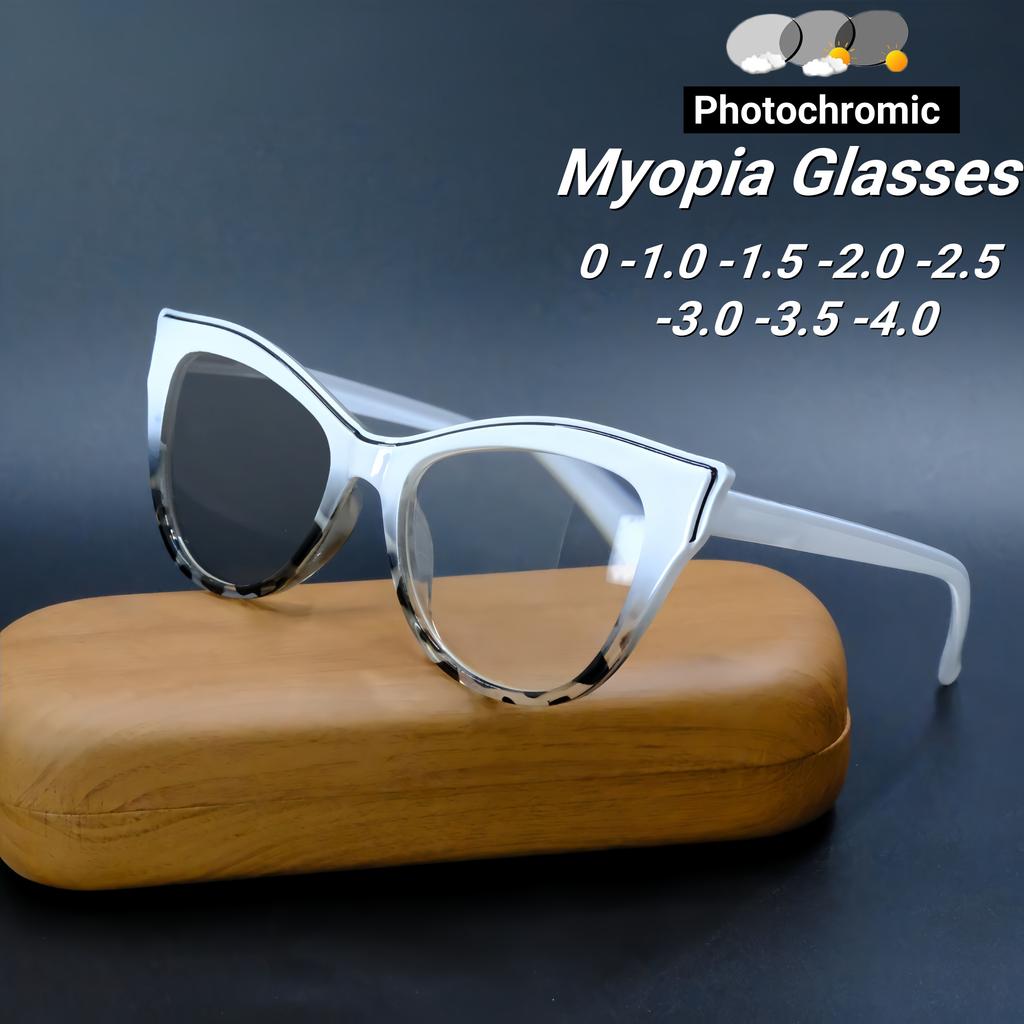 New Fashionable Hd Cat Eye Photochromic Women'S Myopia Glasses Retro Neutral High Quality Anti Blue Light Glasses