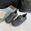 Winter New Retro Casual Velvet Warm Women's Round Head Versatile One-pedal Flat Single Shoes