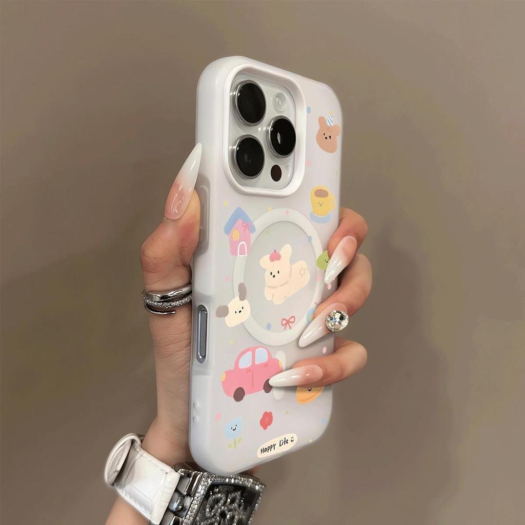 Magnetic Jelly Two-in-One Phone Case 15pm Matte Solid Color Case For Apple 16pm 3D Cartoon Creative Design
