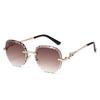 New Luxury Frameless Round Gradient Women Sunglasses Personality Leopard Head Wave Pattern Design Men Trend Glasses Uv400
