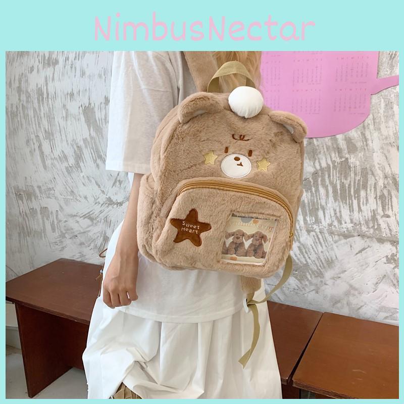 This plush cartoon backpack features a soft, polyester exterior with detailed stitching, measuring approximately 33*25*11cm in depth. Designed with a zipper closure, it includes interior pockets for phones and documents, supporting daily organization. Perfect for casual outings, school, or weekend activities, it offers lightweight comfort and easy maintenance simply wipe clean with a damp cloth.