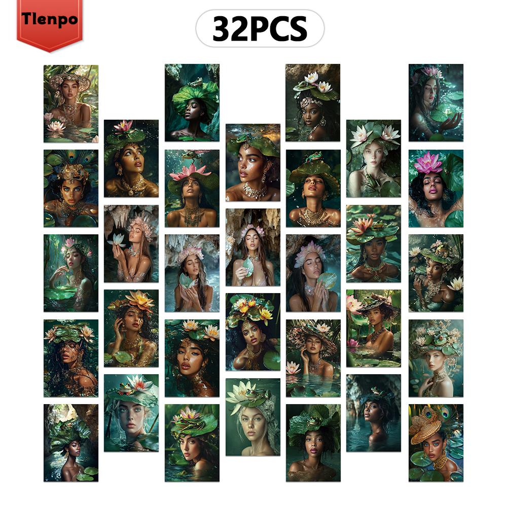 32pcs, Black Postcard, Lotus Flower, Frog, Birthday/Anniversary Gift, Collectible, Suitable for Gift Giving, Can Be Mailed.