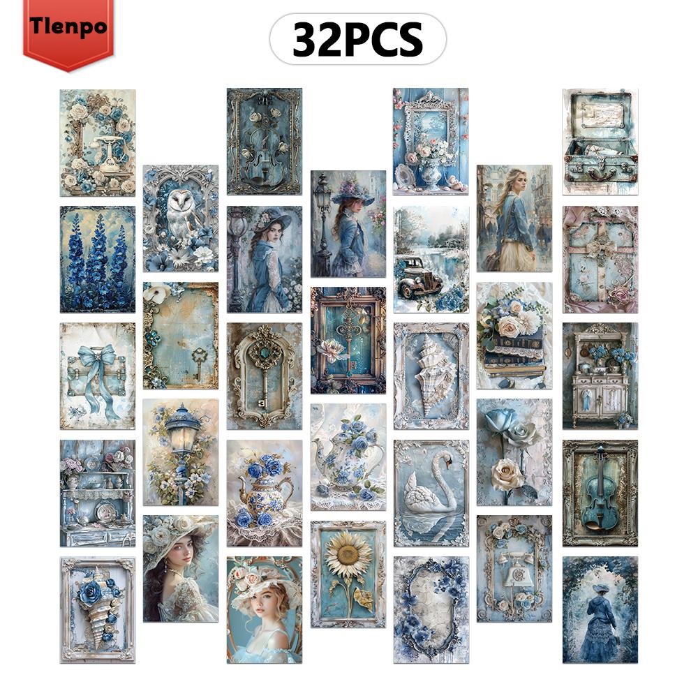 32pcs, Vintage Cool-toned Exquisite Postcard, Birthday/anniversary Gift, Collectible, Suitable for Gift-giving, Can Be Mailed.