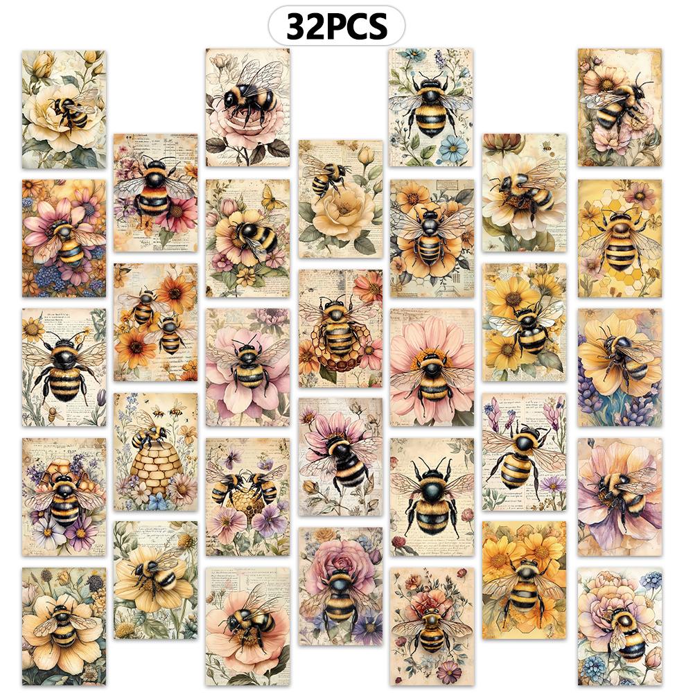 32pcs, Vintage Bee Floral Postcards, Room Decoration Stickers, Brochure Materials, Souvenirs, Collectibles and Mailing