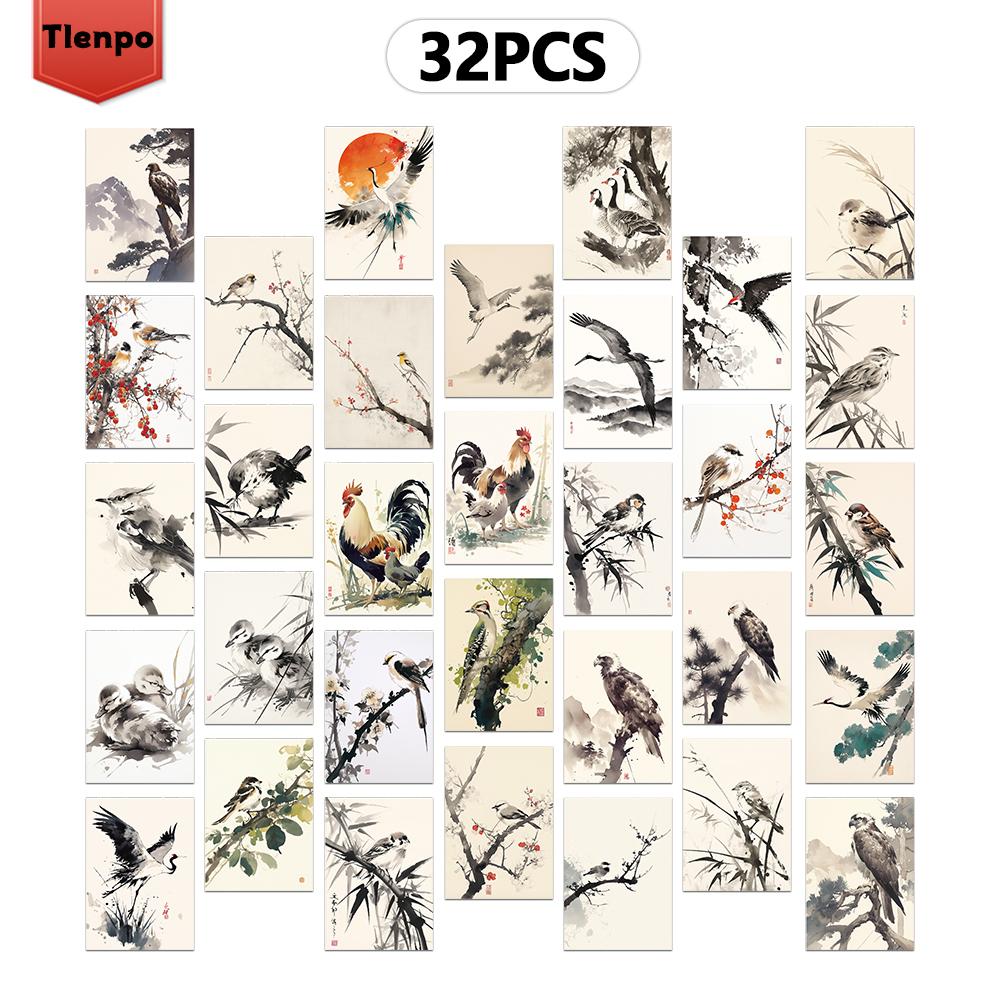 32pcs, Japanese Bird Illustration Vintage Postcards, Mailing Cards, Greeting Cards, DIY Cards, Souvenir Postcards, Decorations