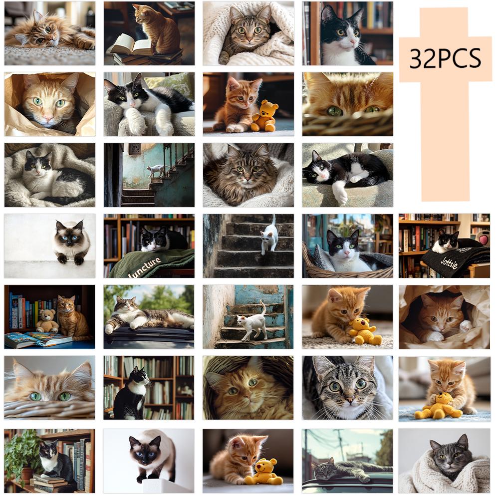 32pcs, High-definition Cute Cat Postcards, Greeting Cards, DIY Postcards, Decorations, Suitable for Collection and Gifting.