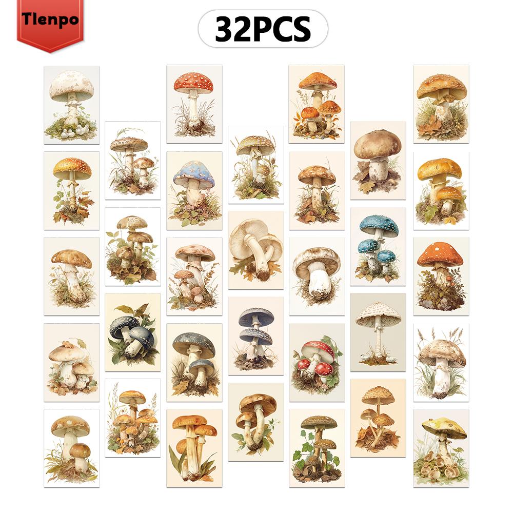 32pcs, Vintage Mushroom Postcards, Plant Art, Greeting Cards, DIY Postcards, Decorations, Collectible and Giftable