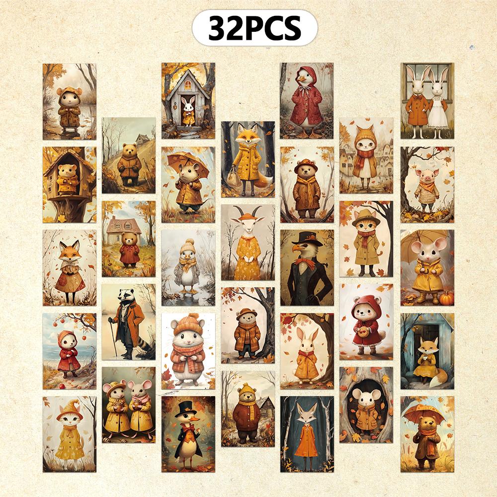 32 Pcs, Vintage Animal Postcards, Wall Stickers, Mailing Cards, Greeting Cards, DIY Postcards, Souvenir Postcards, Decorations