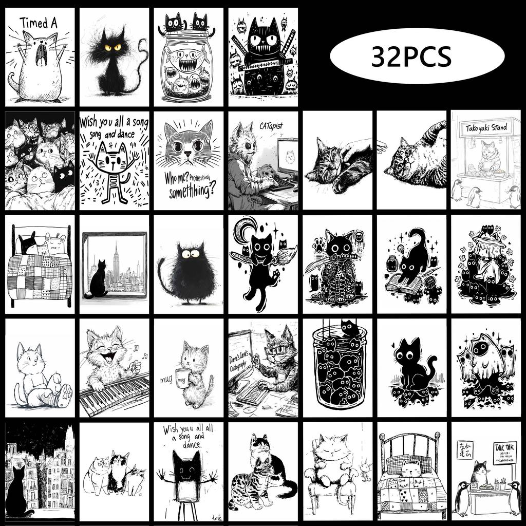32pcs, Comic Cat Postcards, Wall Stickers, Mailing Cards, Greeting Cards, DIY Postcards, Souvenir Postcards, Decorative Items