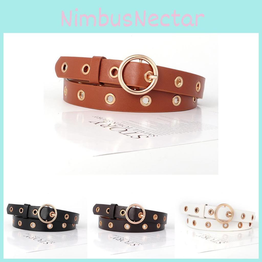 Pu Versatile Leather Belt For Women With Punching Detail And Metal Buckle