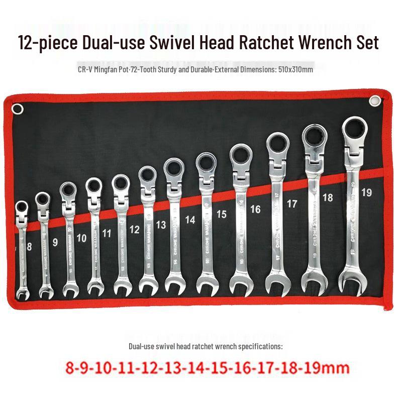 Adjustable Gear Ratchet Wrench Set with Canvas Hanging Bag