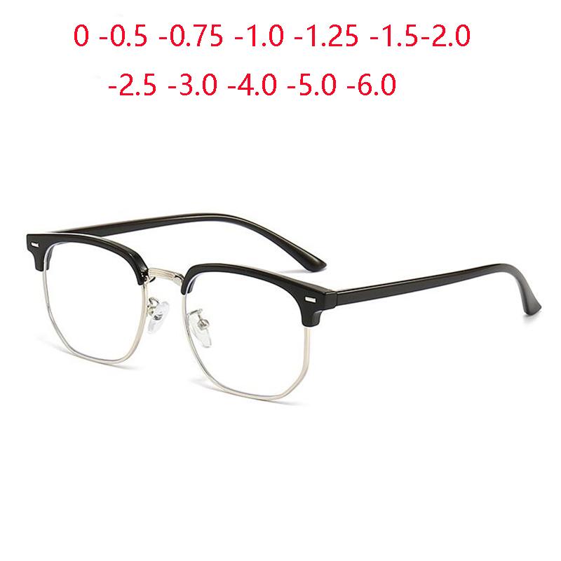 Half Frame Student Polygon Prescription Glasses For The Nearsighted Women Men Clear Lens Short-Sight Eyewear 0 -0.5 -1.0 To -6.0