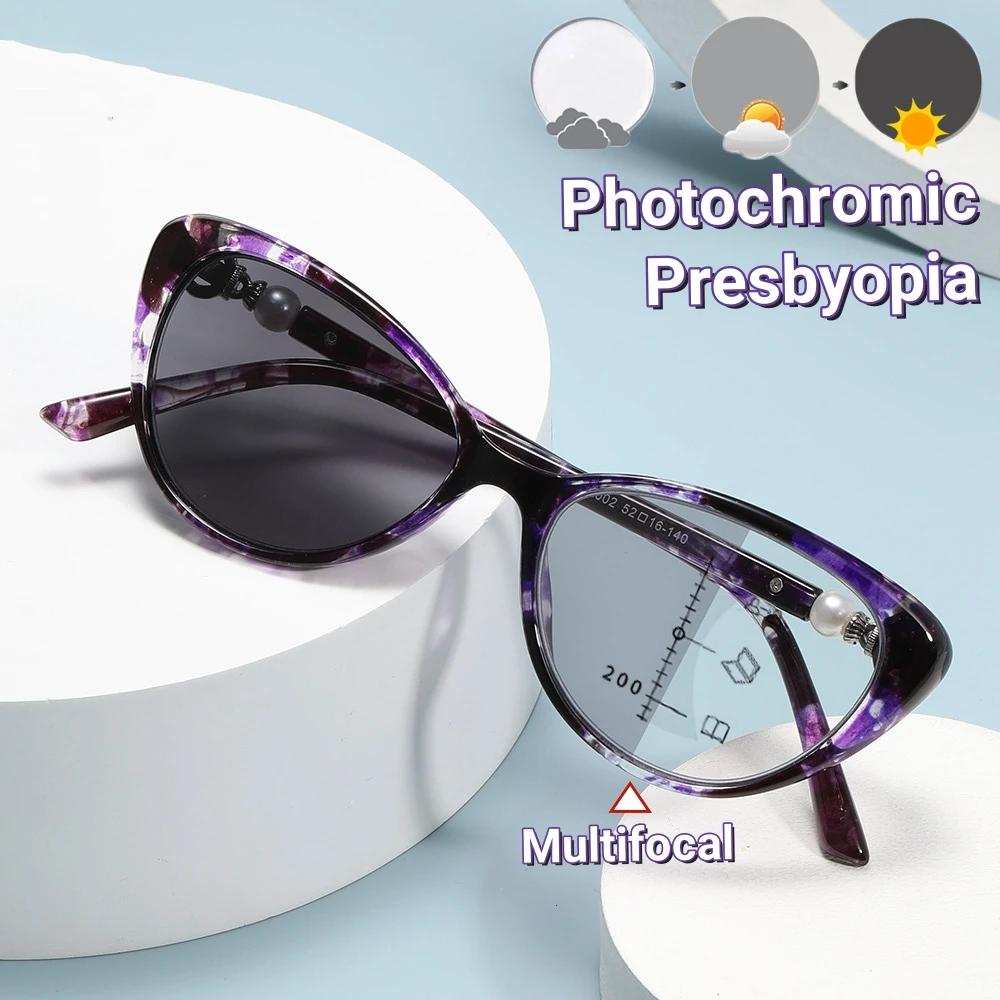 Cat Eye Multifocal Photochromic Reading Glasses Women Anti Blue Light Blocking Presbyopic Eyewear Computer Hyperopia Eyeglasses
