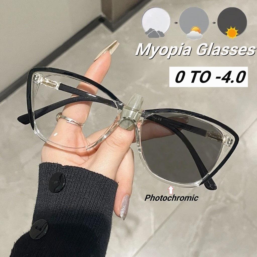 New Fashion Cat Eye Photochromic Women'S Myopia Glasses Personalized Ultra Light Eyeglasses Anti Blue Light Near Sight Glasses