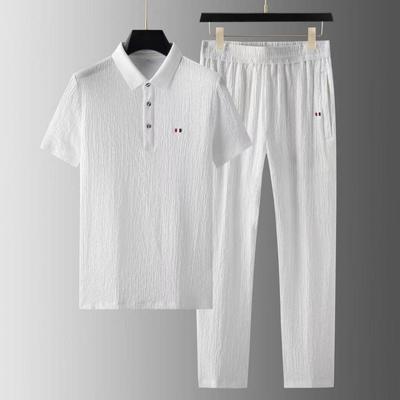 Men's Summer Silky Lapel POLO Shirt Short Sleeve Suit Youth Ice Silk Pants Casual Sports Two Sets