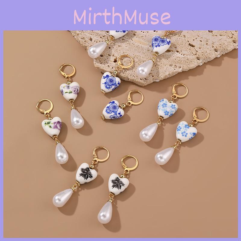 These fashion pearl earrings feature a heart-shaped design inspired by traditional Chinese porcelain patterns, combining elegance with vintage charm. Made of durable resin and plastic, they measure approximately 2.1-4cm in length, offering lightweight comfort. Ideal for summer outings or casual wear, they enhance a fresh, sweet Korean-style aesthetic. Wipe clean with a damp cloth to maintain their vibrant appearance.
