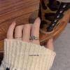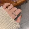 Double Row Pave Diamond Adjustable Open Ring - Women's Trendy Cold Style Niche Design