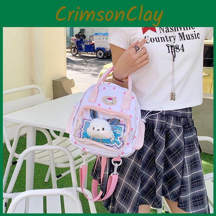 Grid Star Transparent Puppy Cartoon Girl Backpack For Student And Casual Wear