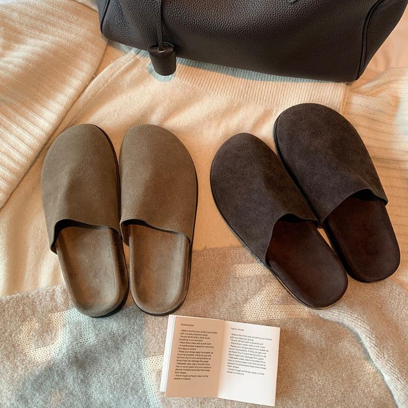 Cowhide Version of Grape Ma Lazy Versatile Round Head One Pedal Thick-soled Leather Bag Head Half Slippers Women