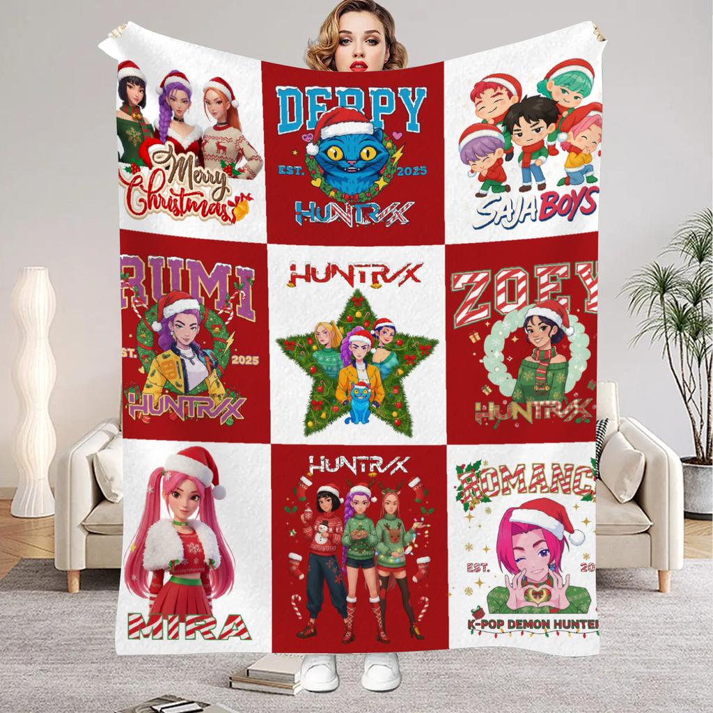 Huntrix Christmas Blanket For Boys Girls K Pop Demon Hunters Rumi Mira Zoey Throw Blanket Cozy Christmas Gift for Huntrix Fans