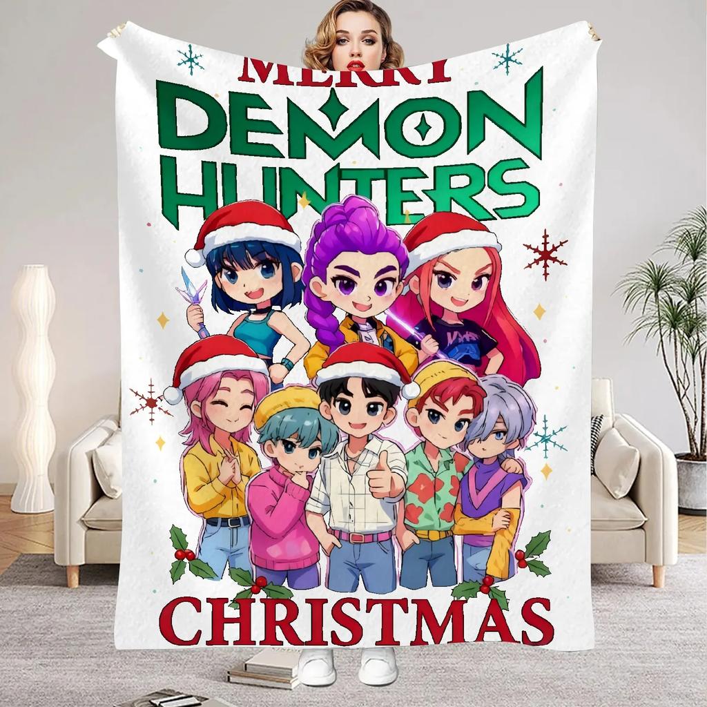 K Pop Demon Hunter Blanket Huntrix Kpop Custom Blanket Kpop Demon Hunters Christmas Gift for Kids Family Christmas Decoration