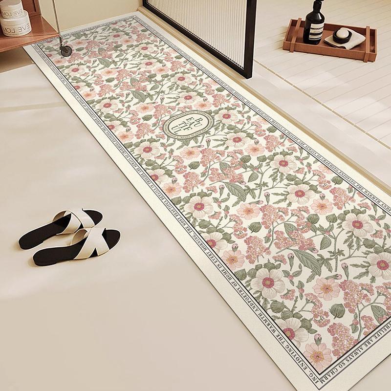 Rug for Bathroom Mat Absorbent Anti-slip Floor Mats Diatom Mud Toilet Shower Area Pink Carpet Plant Flowers Home Decoration Rugs
