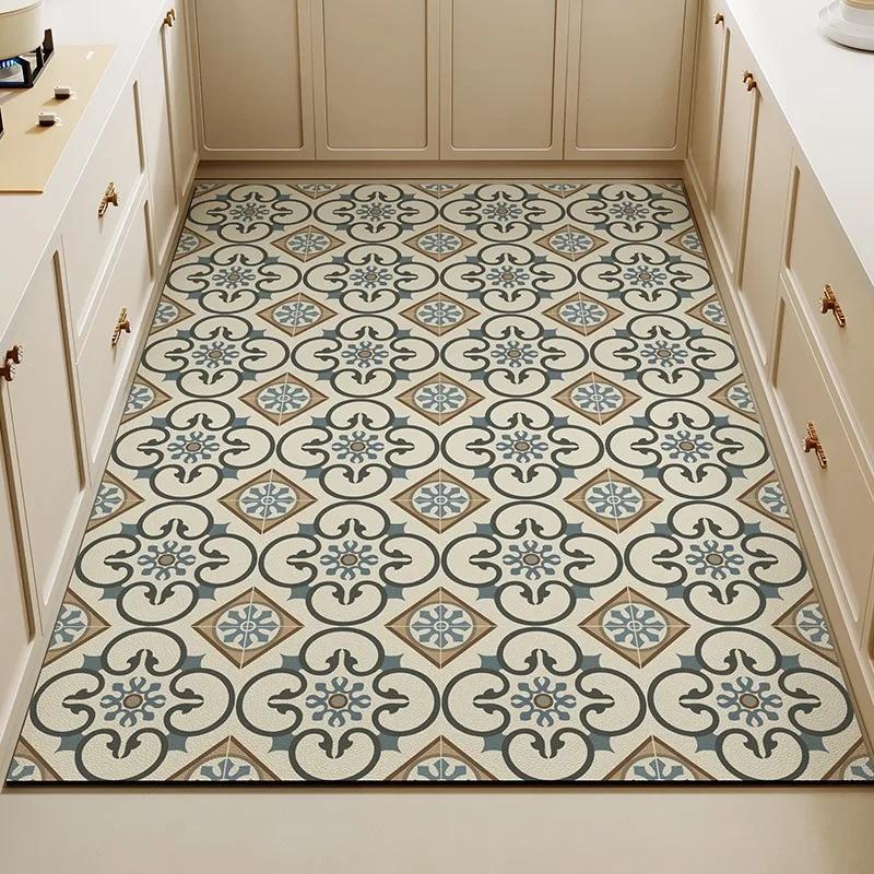 Carpet for Kitchen Pvc Floor Mat Large Size Waterproof Non-slip Carpets Leather Anti-oil Foot Mats Retro Home Decoration Rug