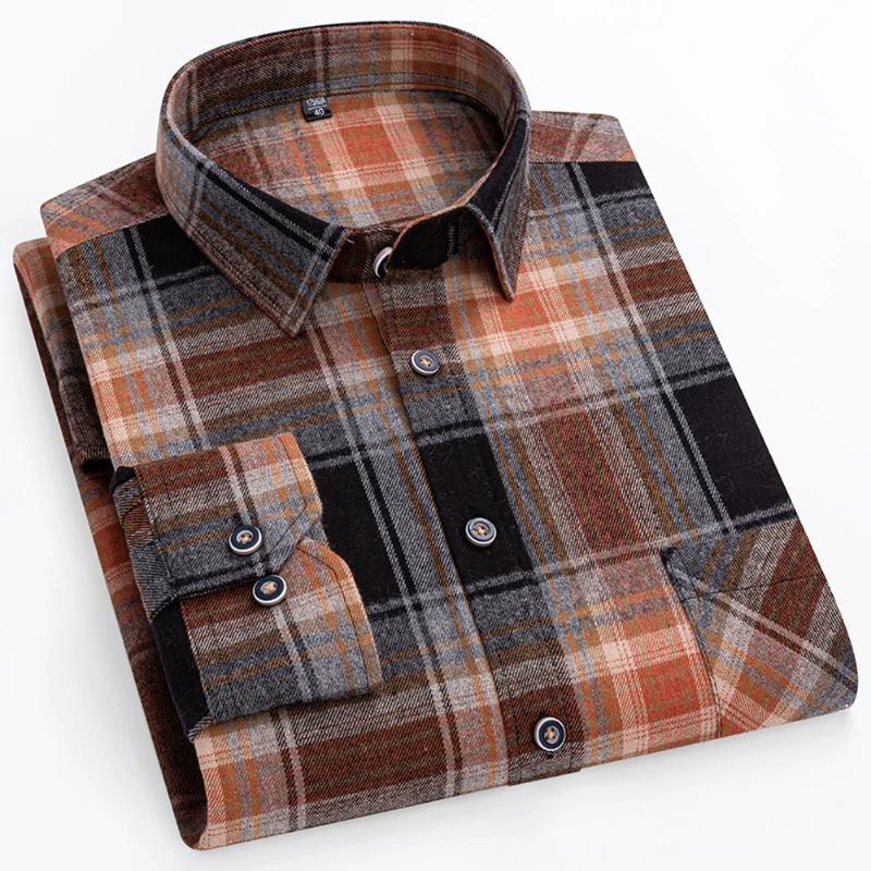 11XL / 160KG Flannel Shirts Men Large Size Plaid Long Sleeve 100% Cotton Checked Elegant Shirts Man Casual Clothes Plus Oversize