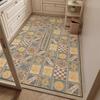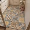 Retro Plaid Kitchen Floor Mat Oil-proof Waterproof PVC Leather Carpet Fashionable Home Decoration Free-cut Balcony Rugs Alfombra