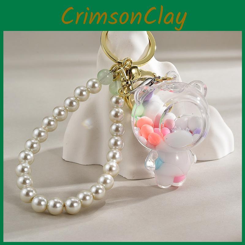 Color Crystal Bead Bear Keychain Bag Pendant Accessory Gift With Pearl Chain