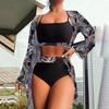 Women's Split Three Piece Set High Waist Long Sleeve Blouse Sunscreen Bikini Sets