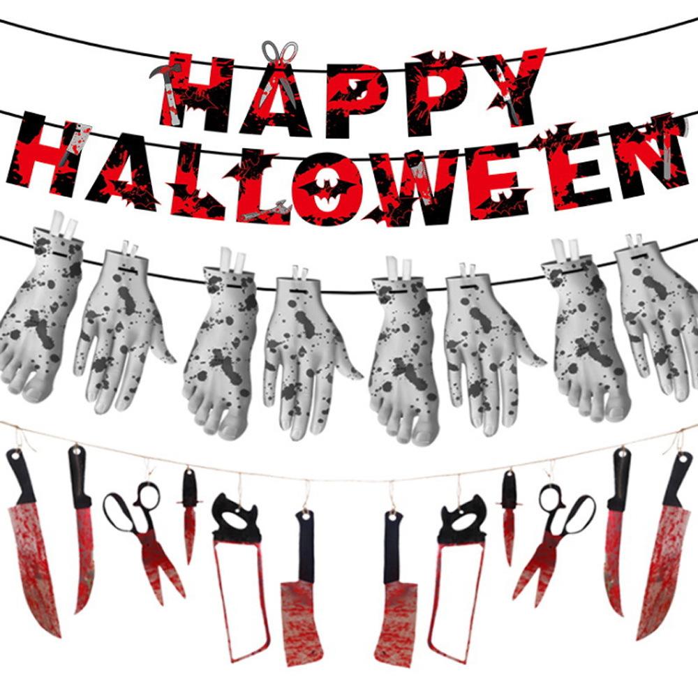 Halloween Horror Decoration Blood Knife String Flag Blood Bat Crow Spiral Pendant Customization