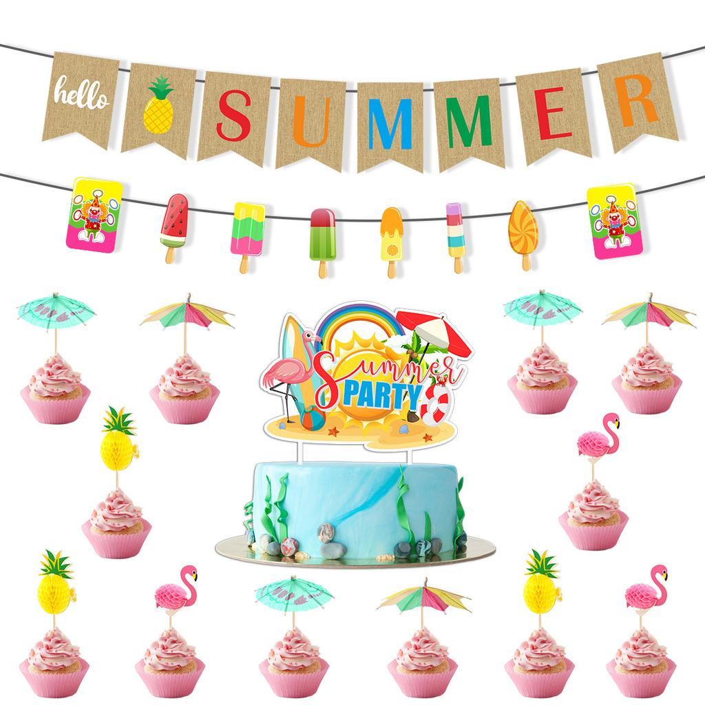 Summer Birthday Party Decoration Hello Summer Flag Popsicle Latte Cake Decoration Insert
