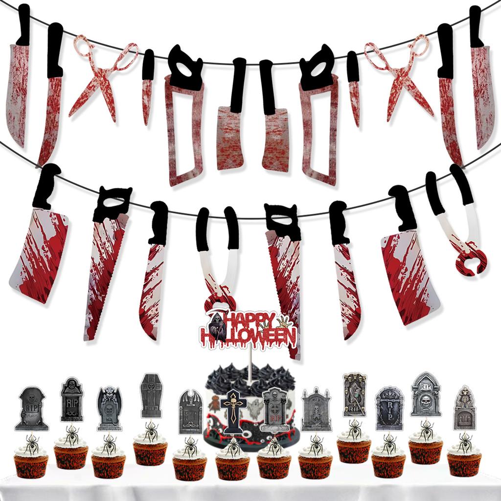 Halloween Paper Blood Knife String Latte Happy Halloween Grim Reaper Tombstone Cake Plug-In Set