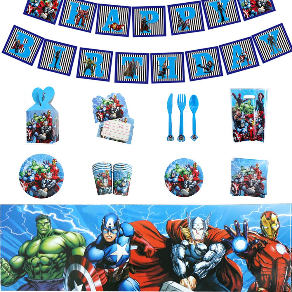 Avengers Birthday Party Supplies Disposable Cutlery Paper Plates Paper Cups Tissue Boys Birthday Party Decorations