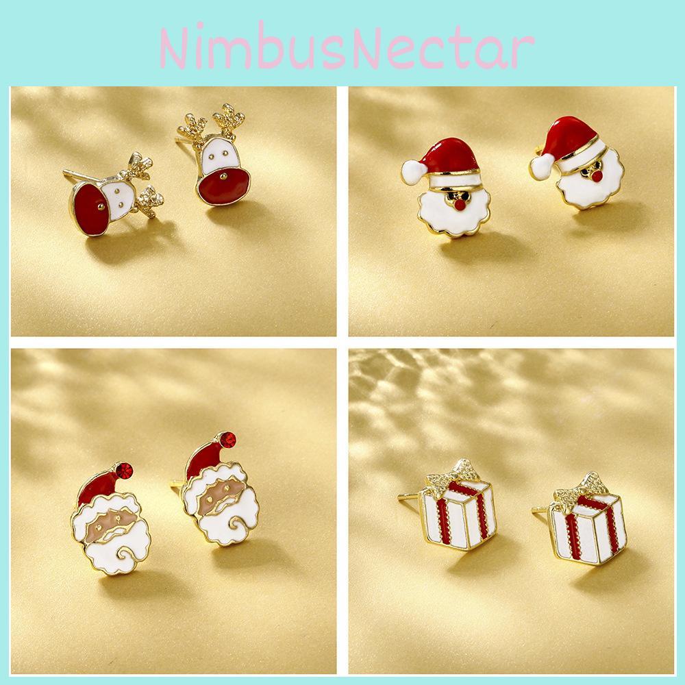Stud Christmas Themed Earrings For Women Elegant Alloy Santa Reindeer And