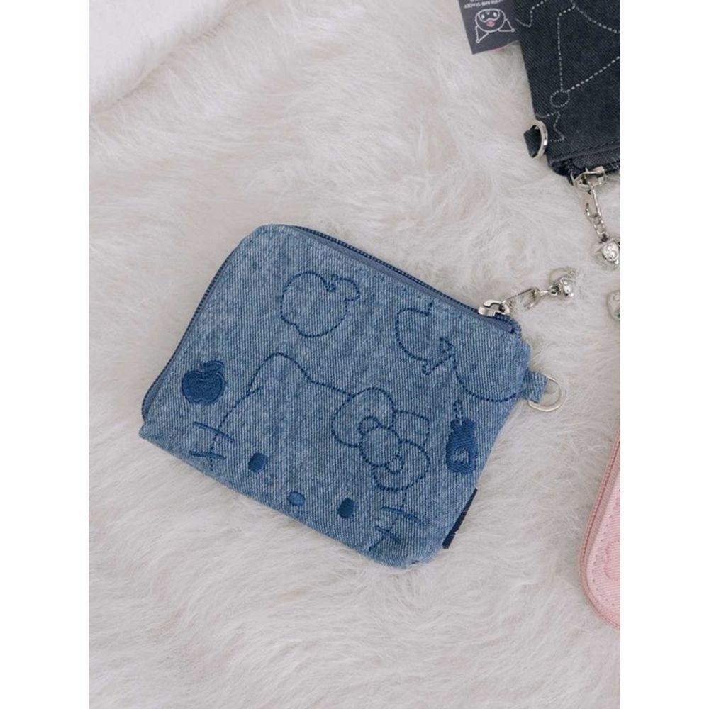 JOSEPH & STACEY Denim Keyring Card Wallet Hello Kitty Washed Blue
