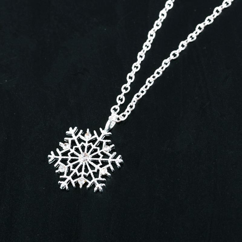 Korean Snowflake Rhinestone Necklace - Silver-Plated Short Pendant Chain, Perfect Christmas Gift