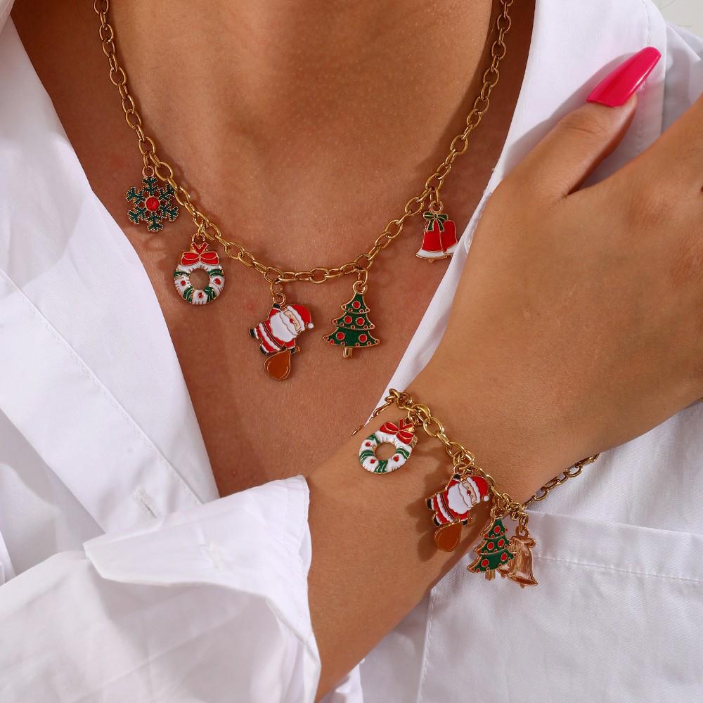 High-End Christmas Necklace with Cartoon Christmas Tree and Bells Design
