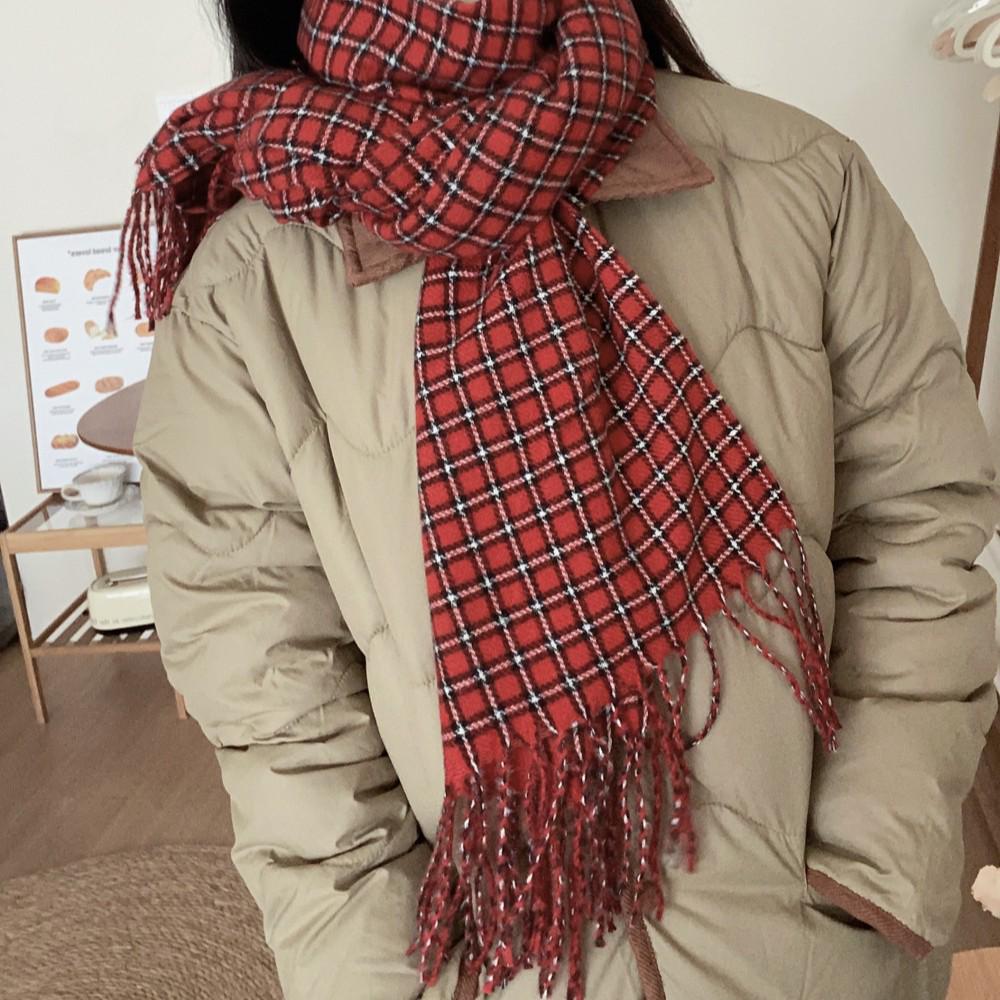 2025 Winter Red Plaid Imitation Cashmere Scarf - Warm Neck Warmer for Women & Couples