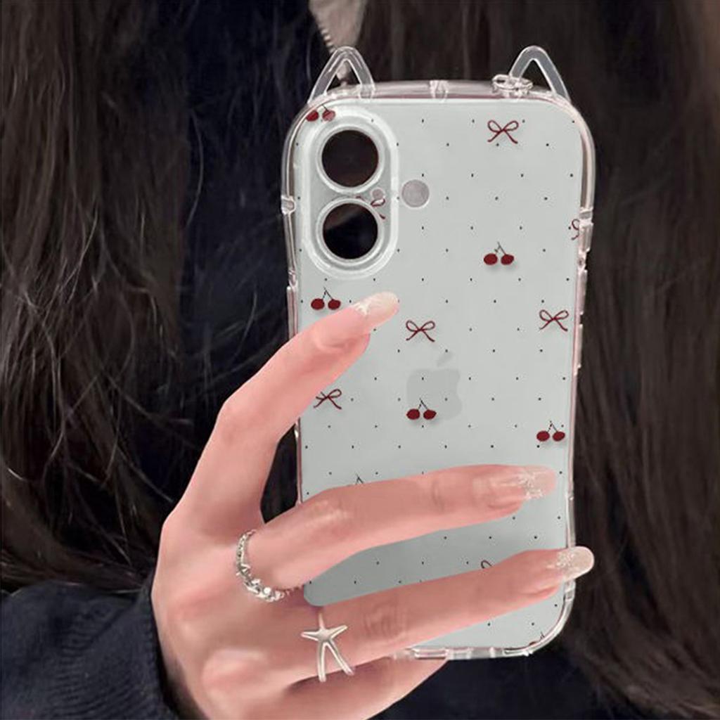 Transparent Cat Ears Frameless for IPhone16pro Mobile Phone Protective Case for IPhone14 for Apple with Chain
