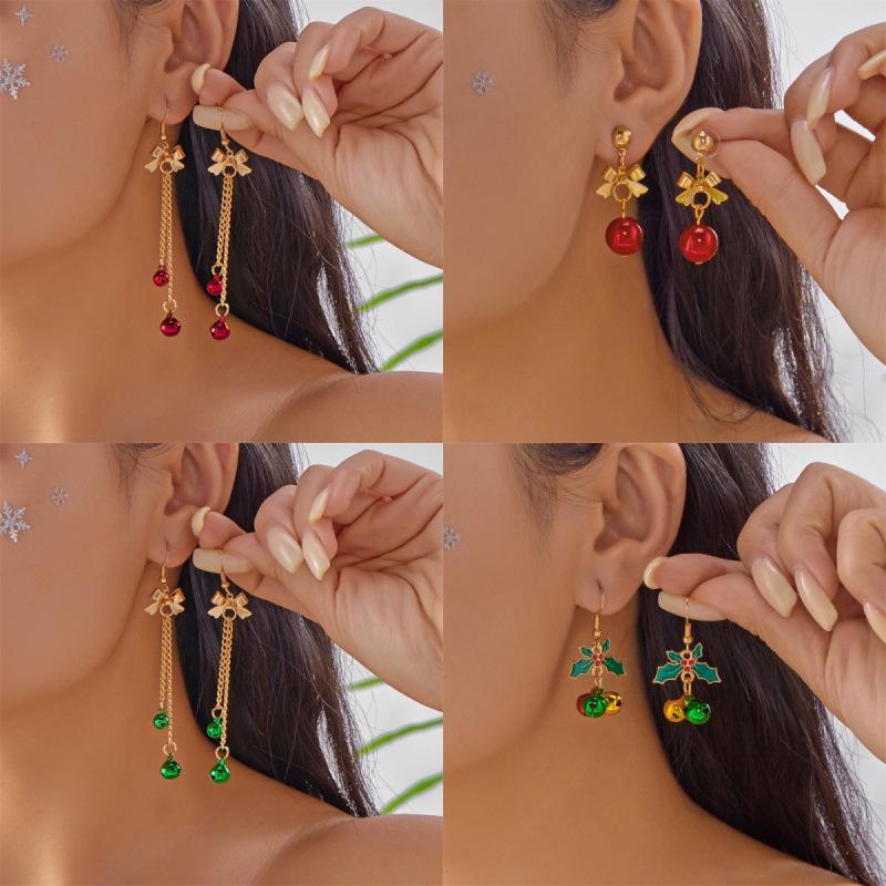Festive Red & Green Bell Tassel Earrings - Stylish Alloy Design for Women