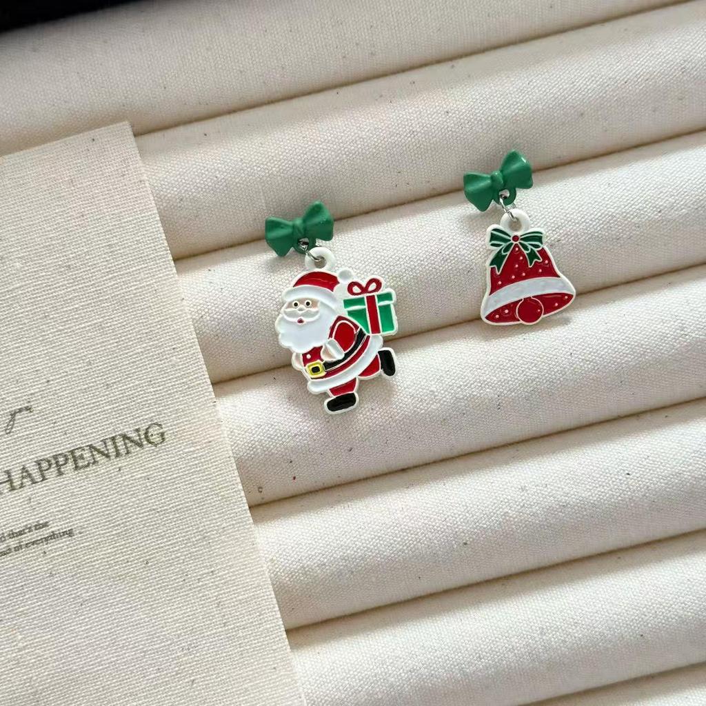 Creative Christmas Drip Oil Santa Bell Earrings for Women
