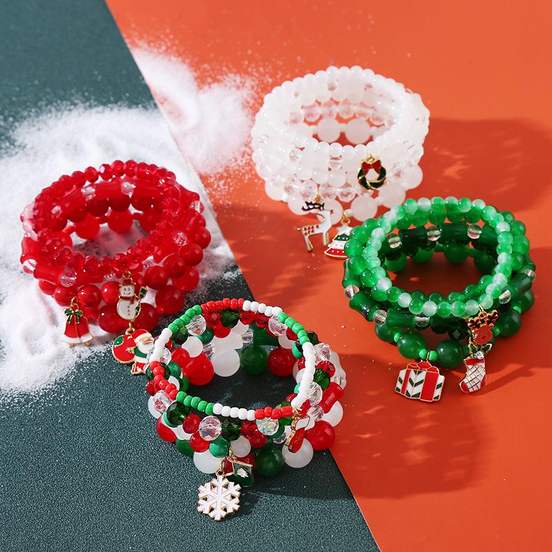 European & American Christmas Bracelet Set with Santa, Bell, & Snowflake Charms for Women