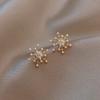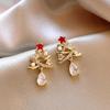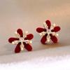 Red Zircon Pearl Snowflake Earrings - Winter Retro Light Luxury Studs